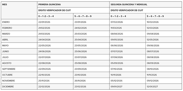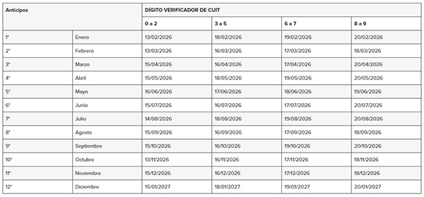 R.G. (CA) N° 20/25. CONVENIO MULTILATERAL. CALENDARIO DE VENCIMIENTOS. PERIODO FISCAL 2026. (B.O. 12/12/2025).